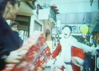 E地点 高橋良明さんがサンタの格好でケーキを売るシーン
